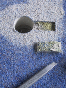 Dazu wurden Proben des verlegten Teppichs mit anhaftenden Kleberresten entnommen